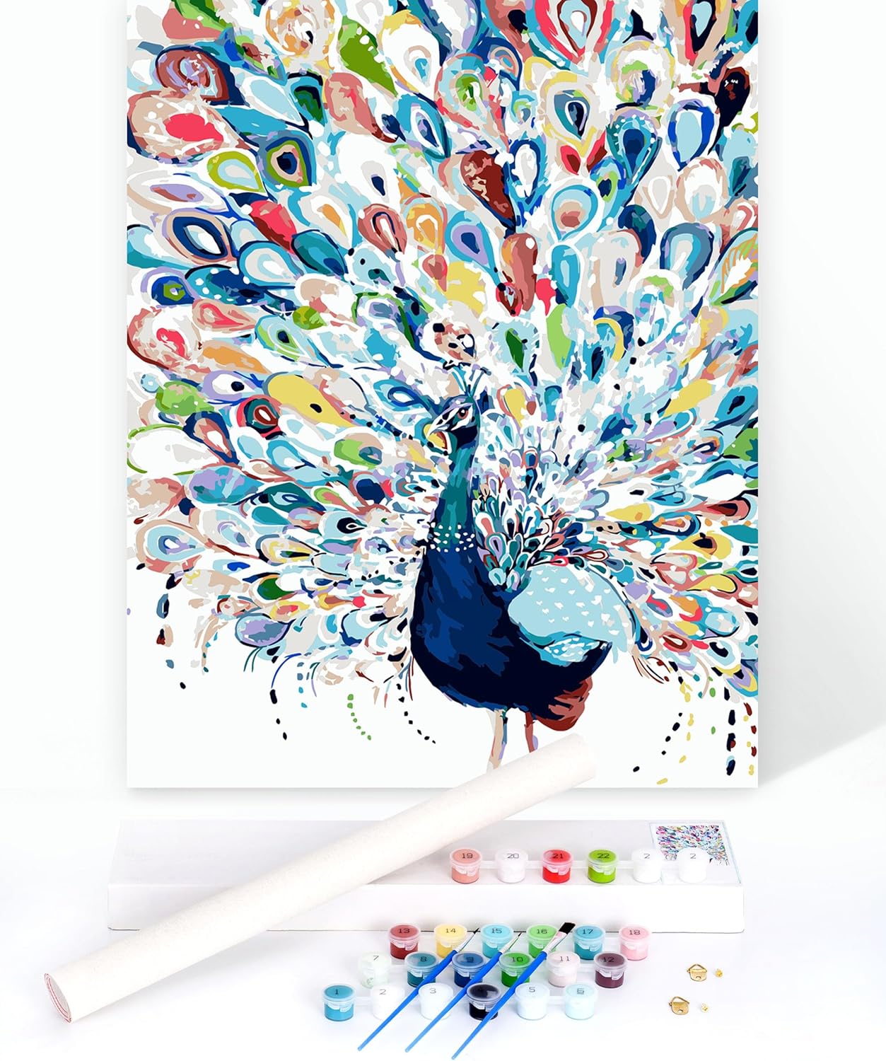 Paint by Number for Adults Peacock Adult Paint by Number Kits on Rollded Canvas Colorful Animal Drawing Acrylic Beginner Paintwork DIY Crafts Without Frame 16×20 Inch