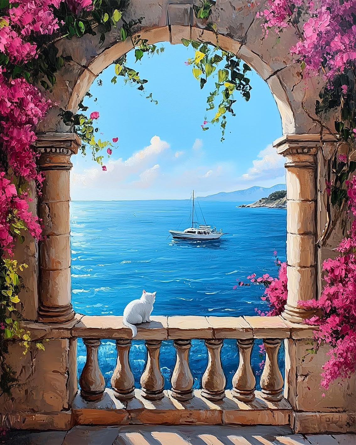 DIY Landscape Paint by Numbers Kit for Adults Beginners,Scenery Paint by Number Kits on Canvas,Cat and Sea Unframed Oil Painting Kits for Home Wall Decor 16X20 Inch.