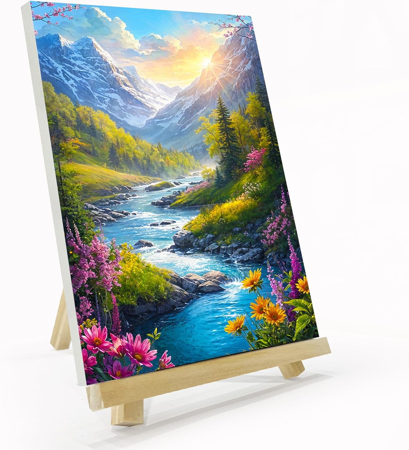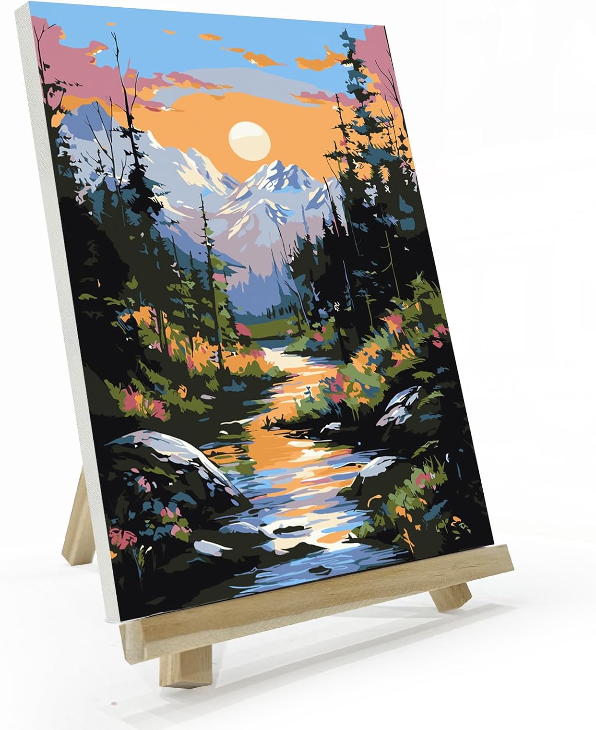 Mountain Paint by Numbers Kit for Adults with Frame, Paint by Number with Easel, DIY Sunset Landscape Paint by Number Kits Framed Canvas for Home Wall Decor 8 x 12 Inch
