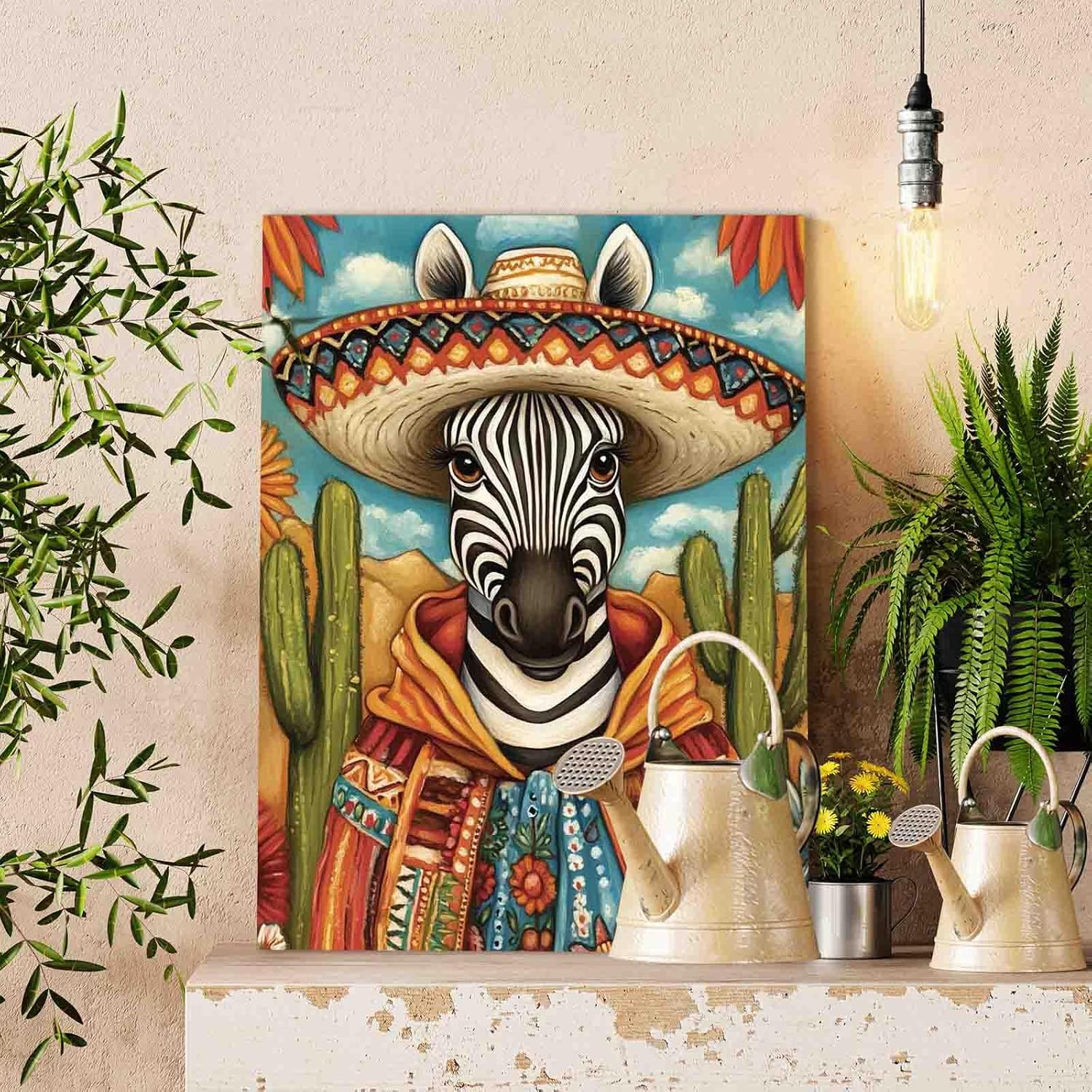 Animal in Sombrero Paint by Numbers for Adults Beginner Zebra in The Desert Oil Painting Kits on Canvas with Brushes and Acrylic Painting Cacti Crafts DIY Home Wall Decor 16×20 Inch (Frameless)