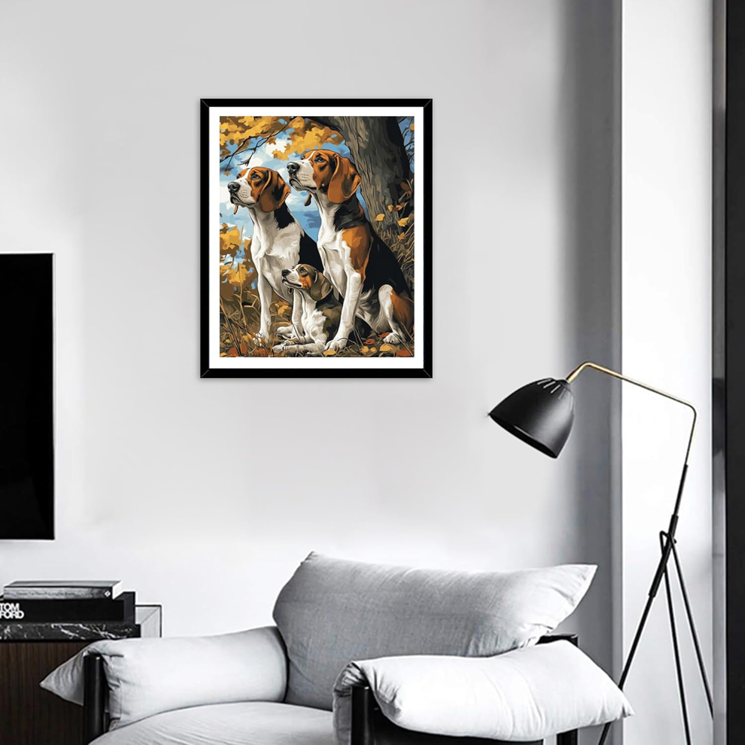 Animals Coonhounds Paint by Numbers for Adults, Dogs Under The Tree Paint by Number Kits, Cute Dog DIY Acrylic Painting on Canvas for Gift Home Wall Decor(16×20inches, No Frame)
