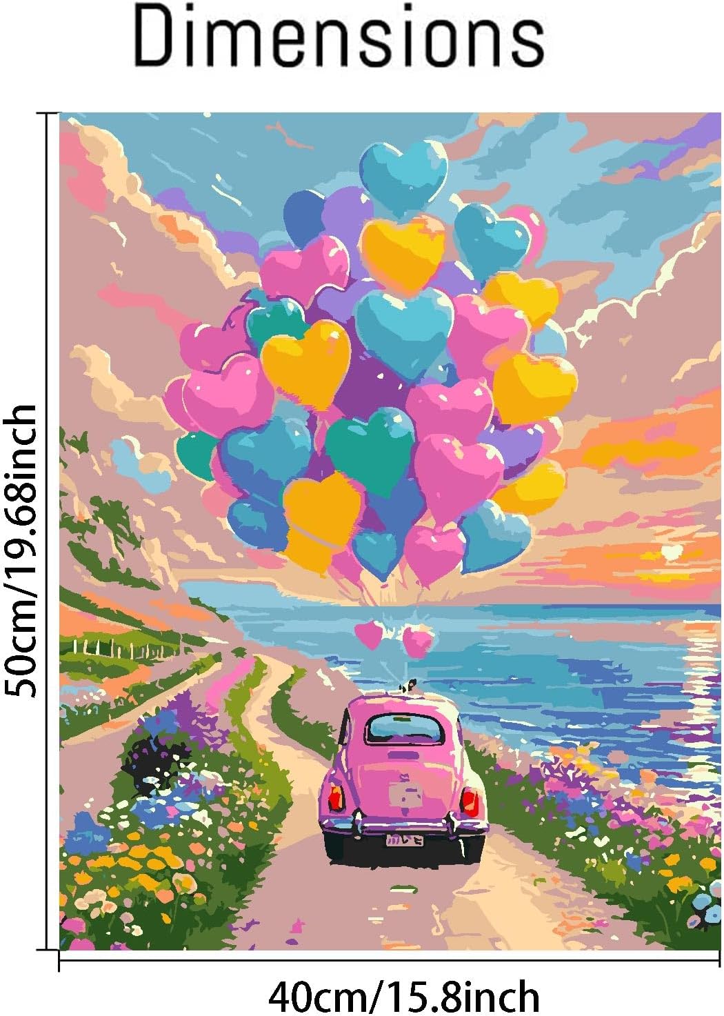 Balloon Paint by Numbers Kit for Adults, Car Paint by Number for Adults Beginner on Canvas, Ideal Gift Choice for Birthday and Festival, DIY Acrylic Paints for Wall Decor 16x20inch