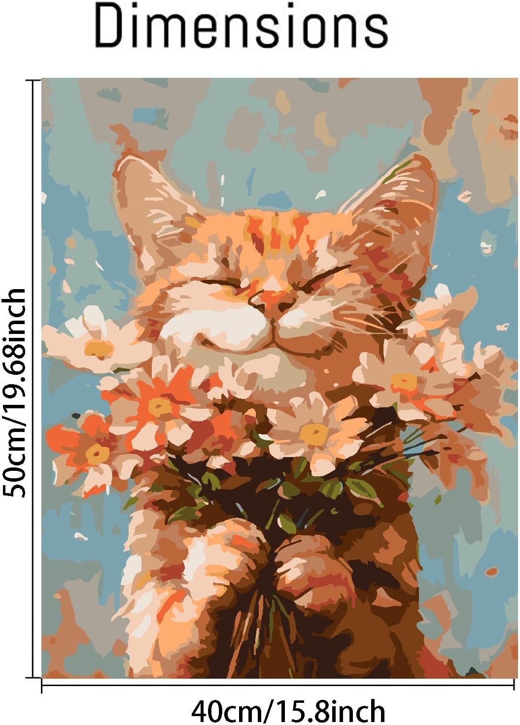 DIY Cat and Flower Paint by Numbers Kits for Adults, Painting by Numbers for Adult & Beginner on Canvas, Animal Oil Painting Kits Perfect for Home Decoration 16×20 Inch