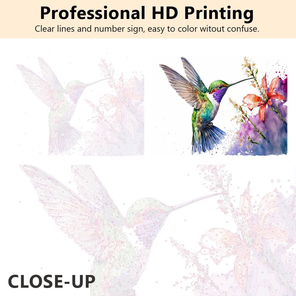 DIY Paint by Number for Adults Hummingbird Paint by Numbers, Colourful Flowers Painting with Brushes and Pigment, Oil Painting Art Crafts for Wall Decoration, 16×20 Inch (Framed)