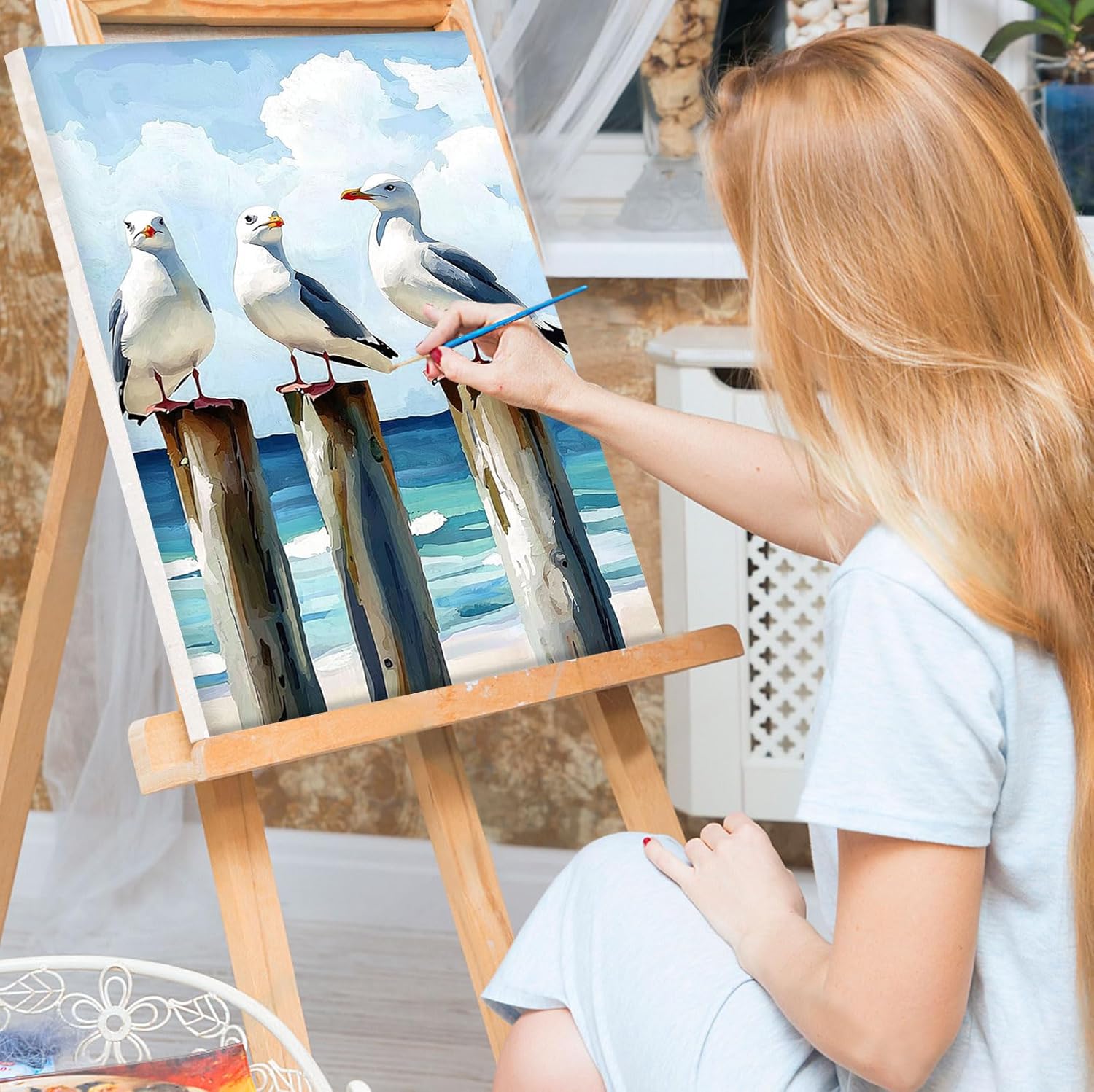 Framed Paint by Numbers Seagull for Adults Beginners, Adults’ Paint-by-Number Seagull Kits, Easy Adult Paint by Number Kits on Canvas, Acrylic Animals Number Painting for Home Decor, 8x12in