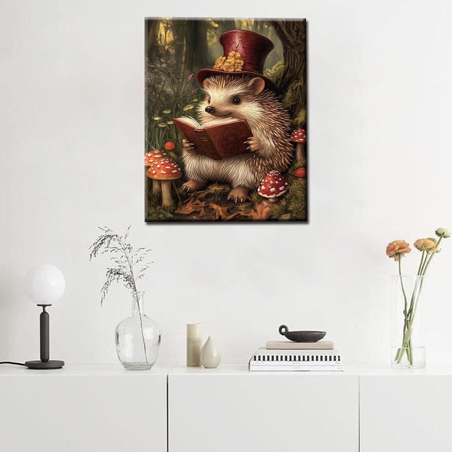 Hedgehog Mushrooms DIY Paint by Numbers for Adults Animals Reading Book Paint by Number Kit on Canvas with Brushes and Pigment for Beginners Home Wall Decor Gifts 16″x20″ (Frameless)