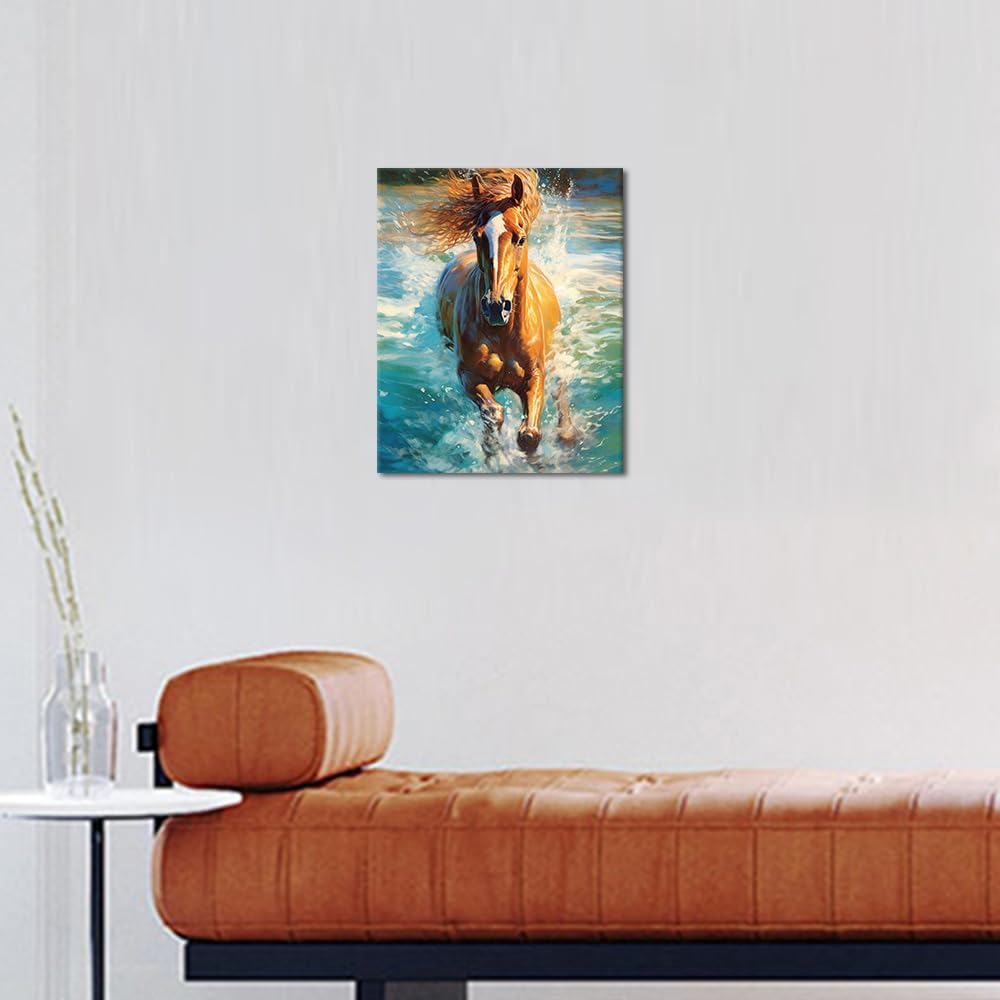 Horse Paint by Numbers for Adults, Running in The Water Horse Paint by Number, Animal Paint by Number Kits on Canvas Drawing, Easy Paint by Numbers Art Crafts(Frameless) 16″x20″Inch