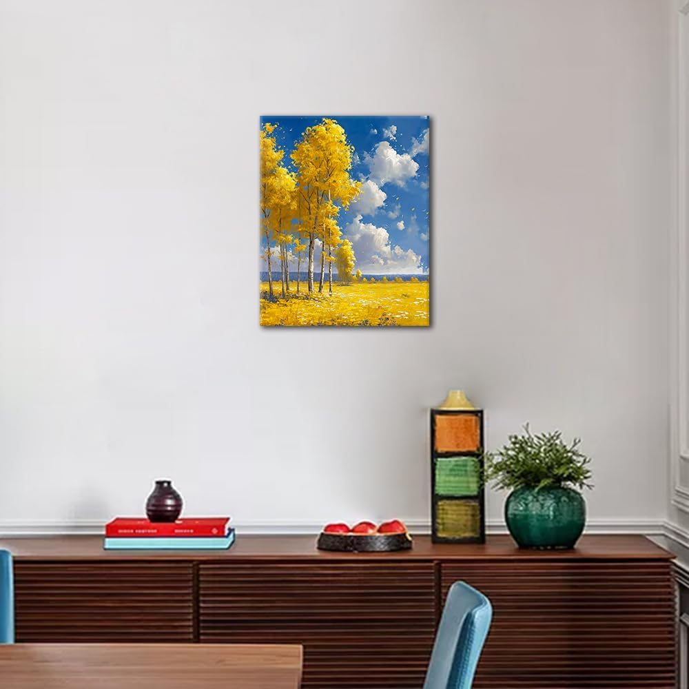 Paint by Number for Adults Birch Forest Paint Number Kits DIY Acrylic Painting for Adults Yellow Trees Paint by Numbers Adults’ Paint-by-Numbers Kits Arts Craft Wall Decor, 16×20 Inch(Framed)