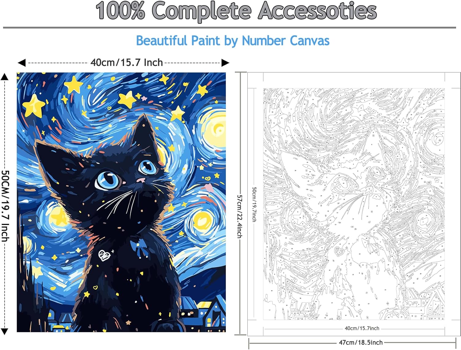 Paint by Numbers Kit for Adults Beginner Black Cat, Paint by Number on Canvas DIY Starry Night, Abstract Sky Acrylic Digital Oil Painting Craft for Gift Home Wall Decor(16 x20 Inch)