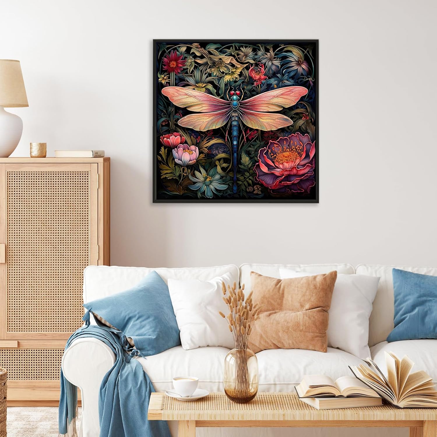 Paint by Numbers Kit for Adults – Dragonfly Adult Paint by Number Kits on Canvas Without Frame for Beginner, Flowers Oil Painting by Numbers Kit for Gift Home Wall Decor 16×16 Inch