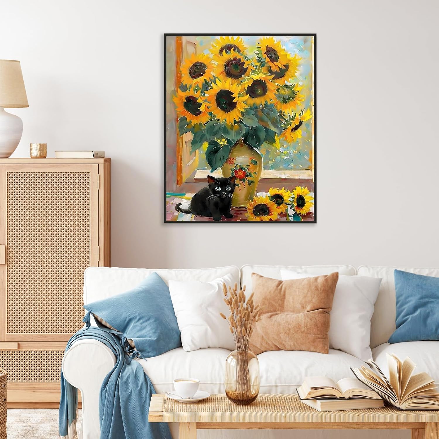 Paint by Numbers Kit for Adults – Sunflower Adult Paint by Number Kits on Canvas Without Frame for Beginner, Black Cat Oil Painting by Numbers Kit for Gift Home Wall Decor 16×20 Inch