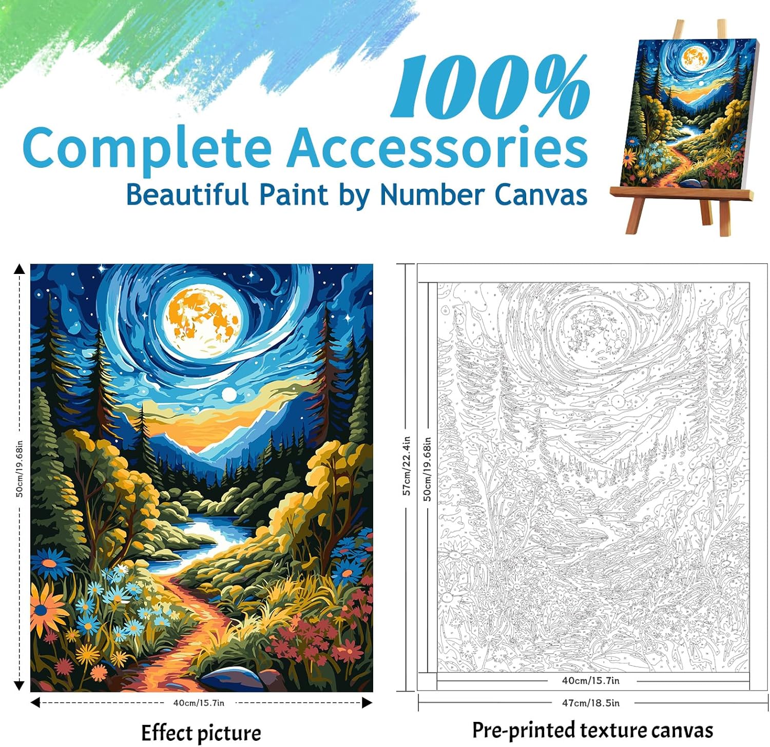 Beautiful Decorations of Wall: The DIY landscape adult paint by number kits on canvas forest moon scene is very suitable for placing in the room, dinning room, wall, table, study, office and so on, the perfect interior decoration will make your room more romantic and cozy