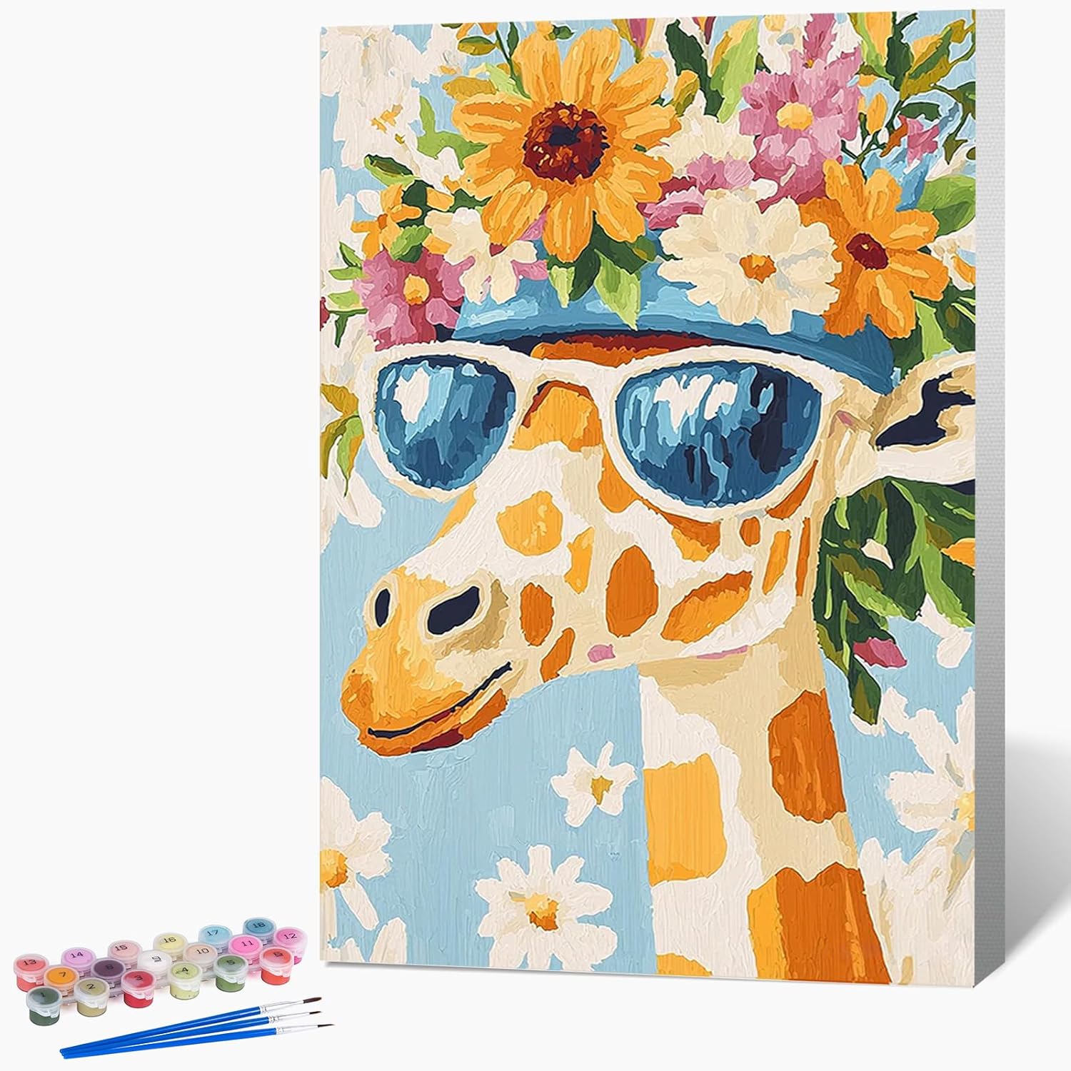 Framed Paint by Numbers Kit for Adults Beginner & Kids Ages 8-12, Animals Giraffe Adult Paint by Number Kits on Canvas, DIY Acrylic Watercolor Oil Paint by Number for Teens for Home Decor 8×12 Inch