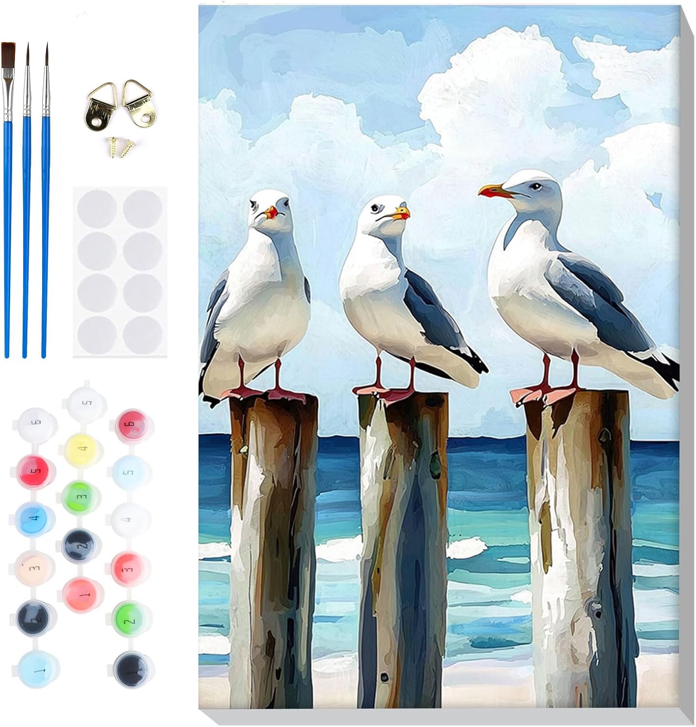 Framed Paint by Numbers Seagull for Adults Beginners, Adults’ Paint-by-Number Seagull Kits, Easy Adult Paint by Number Kits on Canvas, Acrylic Animals Number Painting for Home Decor, 8x12in