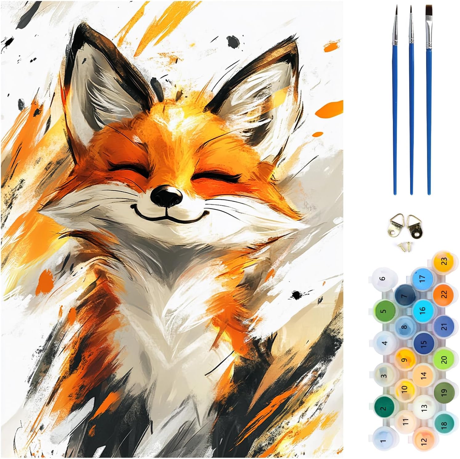 Fox Paint by Numbers Kit, Cute Animal Paint by Numbers for Adults Beginners, DIY Acrylic Oil Painting by Number on Canvas for Gift Home Wall Decor 12x16in